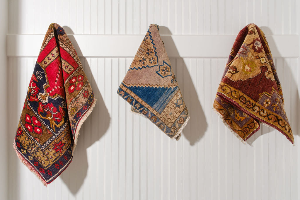 Small hand-loomed Turkish rugs. Perfect for entry-ways, kitchens and bathrooms!